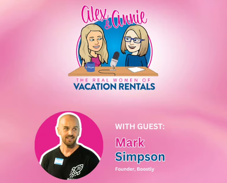 Welcome to Alex & Annie, the real women of vacation rentals. I’m Alex, and I’m Annie, and we are joined today with Mark Simpson, who is the CEO of Boostly, Mark, it’s so good to see you back again for the third time.